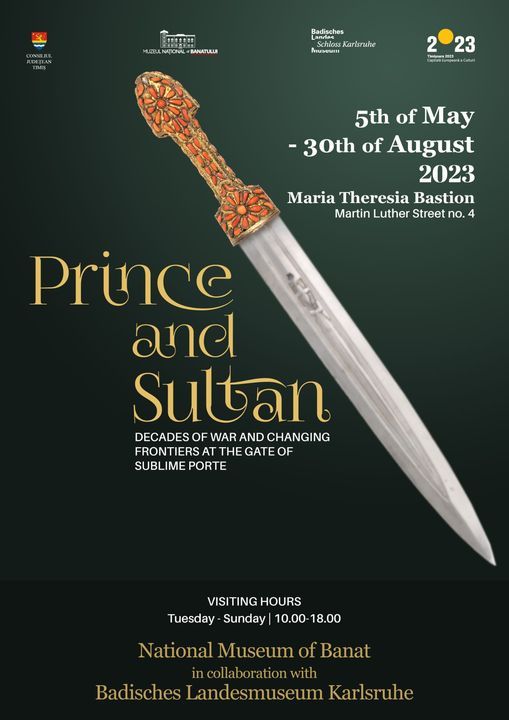 * Muzeul Naţional al Banatului (MNB) din Timişoara vernisează, vineri, 5 mai, o expoziţie unică în Europa de Est. Intitulată "Prinţ şi Sultan. Decenii de război şi fronturi fluctuante la hotarele Sublimei Porţi (1683-1716)", aceasta include aproape 40 de piese ce reprezintă capturi de război pe care armata imperială le-a luat de la prizonieri otomani de rang înalt.