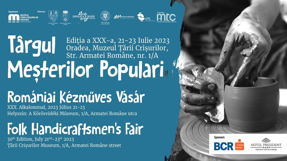 * Târgul meşterilor populari din România, ediţia aniversară XXX, va avea loc, în perioada 21-23 iulie, în curtea Muzeului Ţării Crişurilor (MTC) din Oradea.