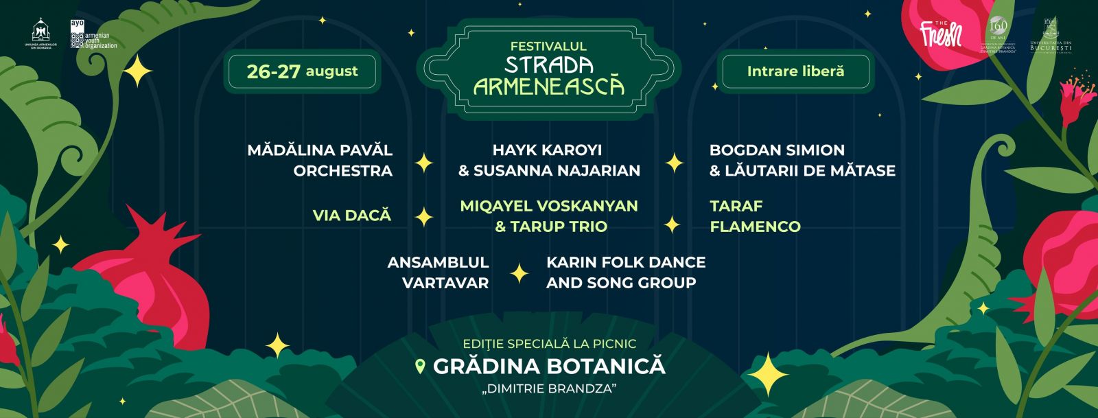 * Pe 26 şi 27 august, Uniunea Armenilor din România prezintă cea de-a 7-a ediţie a Festivalului Strada Armenească, în premieră la Grădina Botanică "Dimitrie Brândză" din Bucureşti. Organizatorii propun două zile de muzică şi distracţie în Grădina Botanică din Bucureşti, cu intrare liberă.