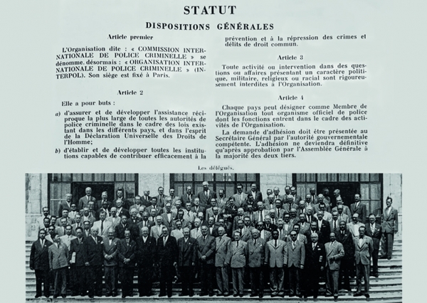 În data de 7 septembrie 1923 s-a hotărât înfiinţarea Comisiei internaţionale de poliţie criminală (ICPC), cu rolul principal de furnizare de asistenţă reciprocă între diferitele state. Obiectivele asumate vizau: posibilitatea de contactare directă a organismelor de poliţie naţională, limbi comune de lucru, crearea birourilor dedicate monedelor, cecurilor şi paşapoartelor contrafăcute, tehnicile şi registrele de amprentare.