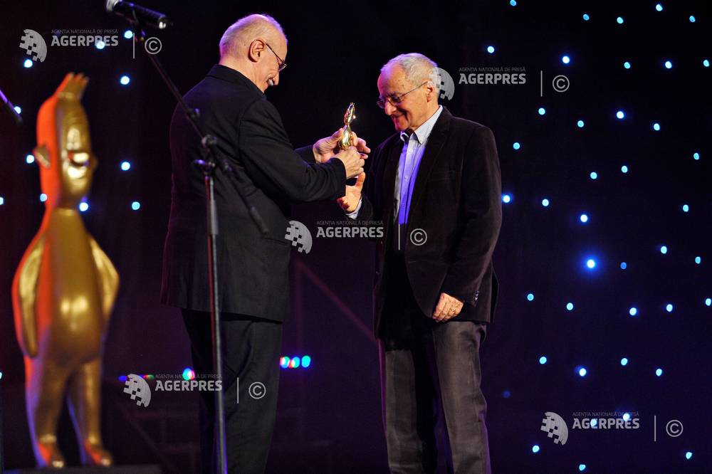 Actorul Victor Rebengiuc (stg.) decernează Premiul pentru Întreaga Activitate regizorului Nicolae Margineanu, în cadrul celei de-a opta ediţii a Galei Premiilor Gopo, eveniment organizat la Opera Naţională, Bucureşti, 24 martie 2014.