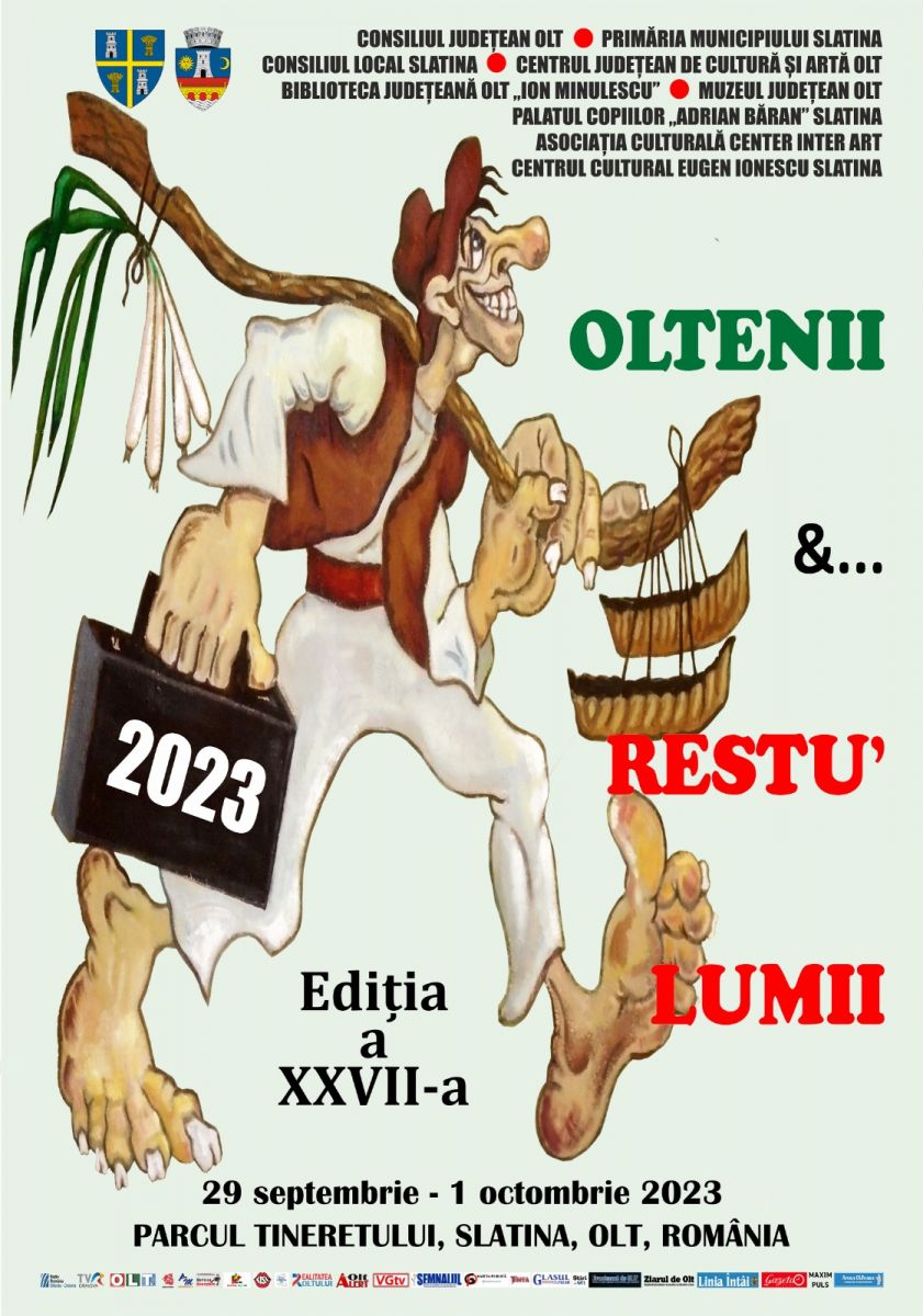 * Festivalul Naţional de Umor "Oltenii & Restu' Lumii", a XXVII - a ediţie, ce va avea loc la Slatina, va fi deschis vineri, 29 septembrie, începând cu ora 11.00, cu Vama oltenească de la podul peste râul Olt. Invitaţii vor fi întâmpinaţi în mod tradiţional, cu fanfară, cu pâine, sare, pastramă, mămăligă, vin şi praz.