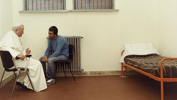 Papa Ioan Paul al II-lea stă alături de cel care a încercat sa-l asasineze, Mehmet Ali Agca, . În anul 1983, Papa a vizitat închisoarea unde Ağca îşi ispăşea pedeapsa (închisoare pe viață) și l-a iertat în mod public pe agresor.