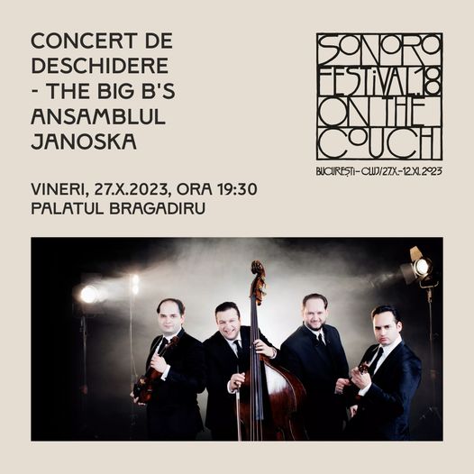 În prima zi a festivalului, de la ora 19.30, publicul va face cunoştinţă, la Palatul Bragadiru, cu excepţionalul Ansamblu Janoska, în "Concertul de deschidere". Ansamblul Janoska, cu pregătire clasică, depăşeşte toate graniţele cu limbajul său muzical poliglot, iar cei trei fraţi din Bratislava - Ondrej şi Roman Janoska, la vioară, şi Frantisek Janoska, la pian - împreună cu Julius Darvas, cumnatul lor, la contrabas, creează o muzică inovatoare şi palpitantă.