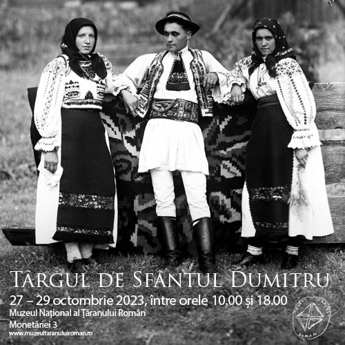 * Vineri, 27 octombrie, începe, la Muzeul Naţional al Ţăranului Român, Târgul de Sfântul Dumitru de antichităţi ţărăneşti, la care participă colecţionari din toată ţara. Evenimentul se încheie duminică, 29 octombrie, şi are loc, zilnic, între orele 10.00 şi 18.00. În cadrul târgului, vizitatorii vor putea admira şi cumpăra: piese de costum ţărănesc (ii, catrinţe, bete, vâlnice); ţesături de interior (covoare, ştergare, feţe de pernă şi feţe de masă); icoane pe lemn şi pe sticlă, cruci, pristolnice, podoabe; mobilier crestat, pictat (lăzi de zestre, mese, scaune, blidare, lingurare, dulapuri); ceramică, doniţe, vase din lemn, putinei, căuce; furci şi roţi de tors, fuse, vârtelniţe; felinare, ceasuri, candelabre, piuliţe şi râşniţe de alamă, dar şi publicaţii socio-etnografice din perioada interbelică, bancnote vechi, timbre cu subiecte etnografice, arată un comunicat de presă transmis AGERPRES de MNŢR. De asemenea, publicul va putea târgui: prăjituri, turtă dulce, cozonaci şi miere, dar şi ţuică, plante de leac şi ghivece cu flori.
