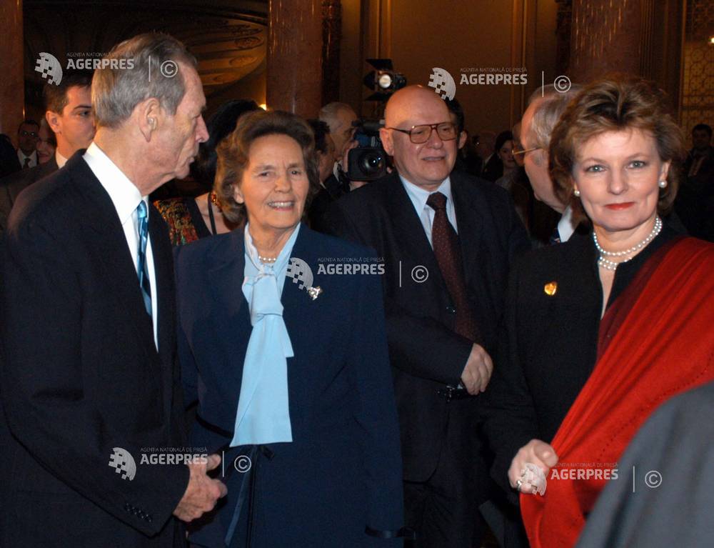 Festivitatea de inaugurare a Institutului Cultural Român. În imagine: Regele Mihai I (stg.), Regina Ana (ctr.-stg.), Răzvan Theodorescu (ctr.-dr.), ministrul Culturii şi Cultelor şi Principesa Margareta (dr.), 21.01.2004.