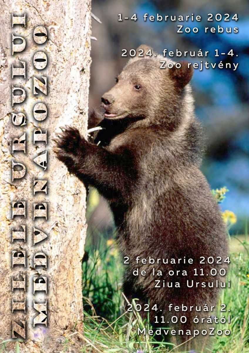 Şi Grădina Zoologică din Târgu Mureş organizează, între 1 şi 4 februarie 2024, evenimentul intitulat "Zilele Ursului", menit să aducă în prim-plan tradiţiile legate de urs. "Pe 2 februarie, la ora 11.00, de Ziua Ursului, va avea loc tradiţionala prognoză meteo, în care urşii noştri vor face preziceri cu privire la vremea viitoare. Este un moment captivant şi plin de tradiţie, în care participanţii pot observa comportamentul urşilor şi pot interpreta semnificaţiile acestuia în ceea ce priveşte prognoza meteorologică. Cum se ştie, în fiecare an, în 2 februarie, ursul îşi părăseşte bârlogul devenind astfel un bun indicator meteorologic. Conform tradiţiei, el îşi priveşte umbra în zăpadă. Dacă este frig sau ceaţă şi nu-şi vede umbra, îşi părăseşte bârlogul şi îşi vede de treburi prin pădure. Dacă timpul este frumos, cu soare şi îşi vede umbra pe zăpadă, intră din nou în bârlog, pentru că iarna va mai dura 40 de zile", se arată într-un comunicat de presă din 26 ianuarie 2024 al Grădinii Zoologice din Târgu Mureş.