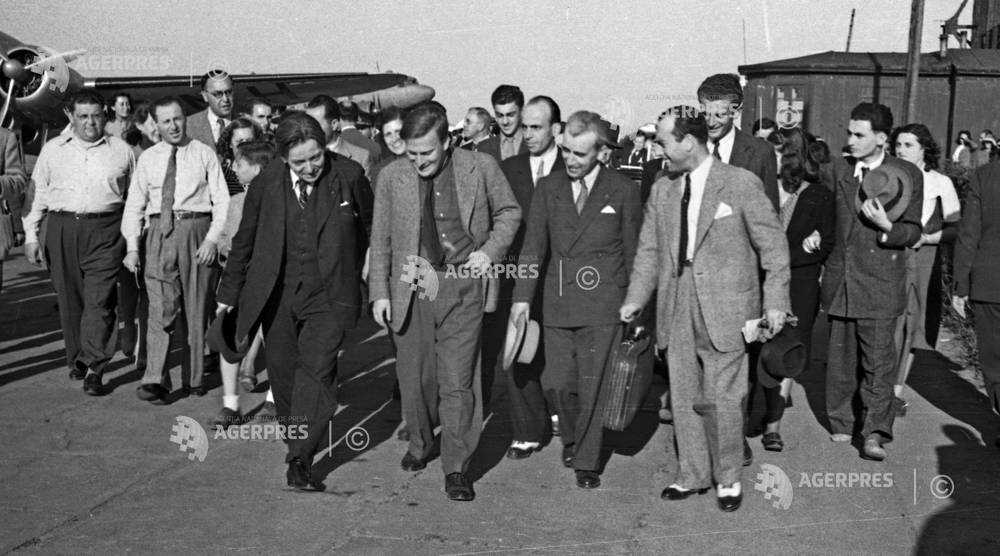 * Explicaţie foto din deschidere: Sosirea pe aeroportul Băneasa a violonistului Yehudi Menuhin (stg.), a fost întâmpinat de George Enescu (dr.), 12.05.1946.