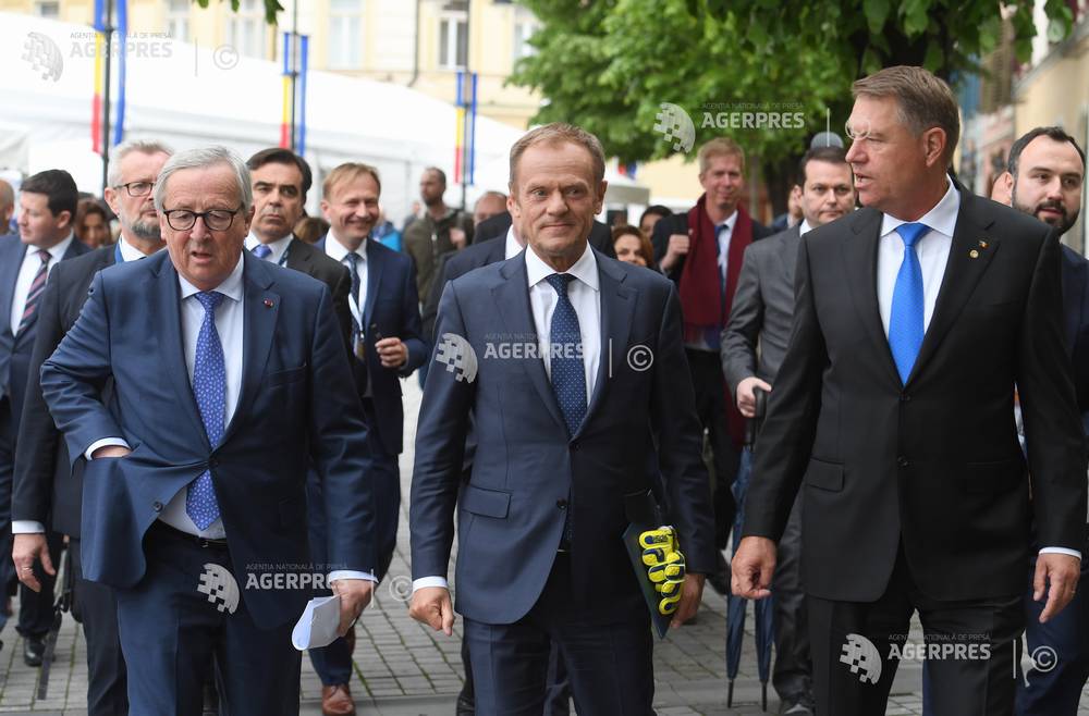 Preşedintele Klaus Iohannis, Donald Tusk, preşedintele Consiliului European şi Antonio Tajani, preşedintele Parlamentului European, se pregătesc să participe la Summitul informal al şefilor de stat şi de Guvern ai Uniunii Europene, organizat la Sibiu.