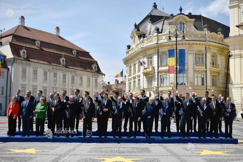 Fotografie de familie cu liderii europeni care participă la Summitul informal al şefilor de stat şi de Guvern ai Uniunii Europene, organizat la Sibiu.