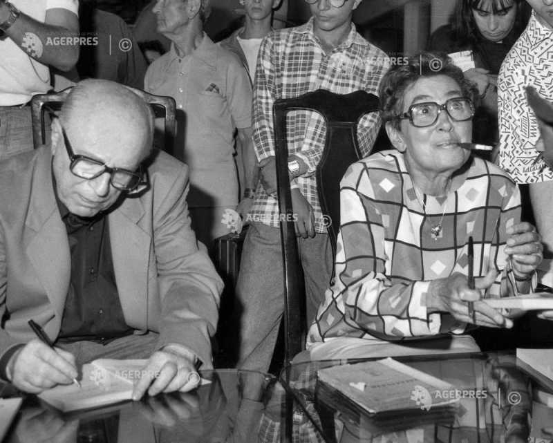 Virgil Ierunca şi Monica Lovinescu în cadrul unei sesiuni de autografe după o lansare de carte, Bucureşti, 12 septembrie 1993.
