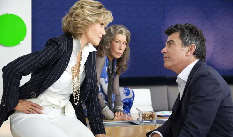 Jane Fonda, Lily Tomlin şi Peter Gallagher în filmul ”Grace şi Frankie” (2015)