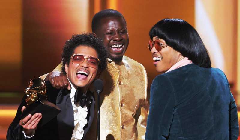 Bruno Mars, D'Mile şi Anderson .Paak la cea de-a 64-a ediţie a Premiilor Grammy (2022).