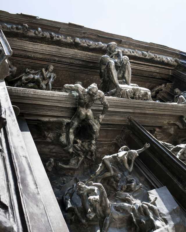 Rodin a început să lucreze, în 1880, la 'The Gates of Hell' ('Porțile Iadului'), monument complex parțial inspirat de Divina Comedie a lui Dante și de Florile Răului de Charles Baudelaire. Ale lucrări remarcabile de sculptură asociate grupului monumentului sunt iconicul 'The Thinker' ('Gânditorul', 1880, menit să fie o reprezentare a lui Dante însuși) și piesa culminantă 'Gates's' ('Porților'), 'The Three Shades' ('Cele Trei Umbre' - 1886), 'The Old Courtesan' ('Bătrâna Curtezană' - 1887) și 'Man With Serpent' ('Omul cu șarpe' - 1887), descoperit postum. Munca depusă la această lucrare a durat până în 1917. Deși Rodin a dorit să expună lucrarea 'Porțile' până la sfârșitul deceniului, proiectul s-a dovedit mare consumator de timp față de prognoza inițială și a rămas neterminat.