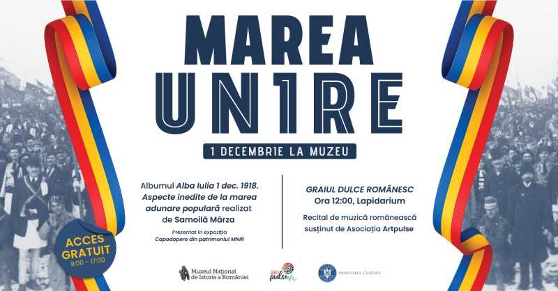 * Luni, 1 decembrie, Muzeul Național de Istorie a României marchează Ziua Națională, prin expunerea albumului intitulat 'Alba Iulia 1 dec. 1918'. Aspecte inedite de la marea adunare populară', un document cu valoare istorică excepțională aflat în colecțiile muzeului. Albumul este realizat de fotograful Unirii, Samoilă Mârza (1886-1967).