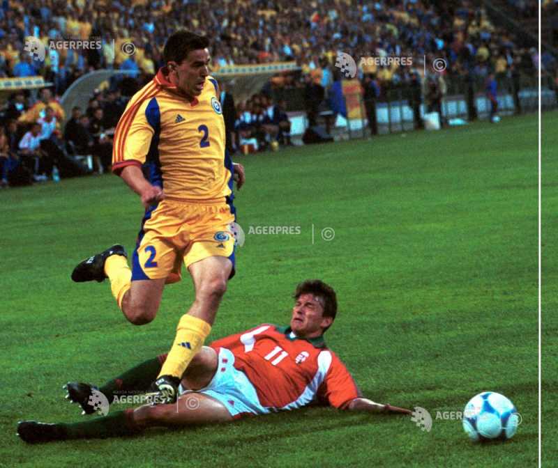 Selecţionata de fotbal a României a învins pe stadionul 'Steaua', cu scorul de 2-0, selecţionata Ungariei. În imagine Contra (stg) şi Istvan Hamar (dr), 2001.