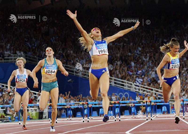 În imagine (de la stg. la dr.): Yuliya Pechenkina (Rusia), Jana Pittman (Australia), Fani Halkia (Grecia) şi Ionela Ţârlea Manolache (Romania), proba feminină de 400 m garduri, 2004.