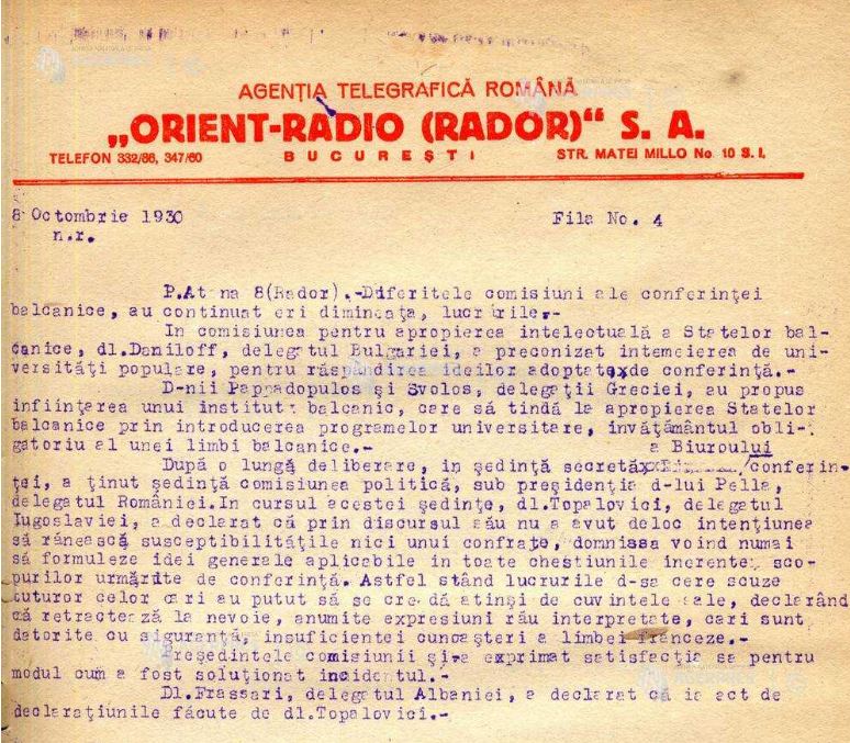 Ştire despre Conferinţa Balcanică din 1930/Arhiva RADOR/AGERPRES