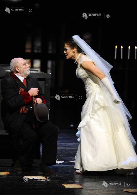 Actorii Mircea Albulescu şi Maia Morgenstern ân spectacolul 'Vizita bătrânei doamne' de Friedrich Durrenmatt, în regia lui Alexander Morfov, la Sala Mare a Teatrului Naţional din Bucureşti (TNB), 2011.