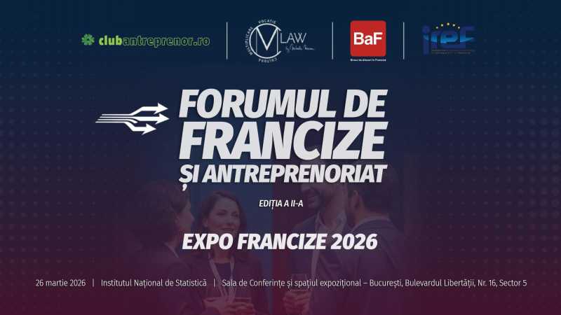Ediția a doua a Forumului de francize și antreprenoriat are loc, joi, la Institutul Național de Statistică, la eveniment anunțându-și participarea și Michel Kahn, președintele Federației Rețelelor Europene de Franciză și Parteneriat (IREF). Evenimentul este organizat de Club Antreprenor, CMV Law by Mihaela Mocanu și BaF - Biroul de Aface