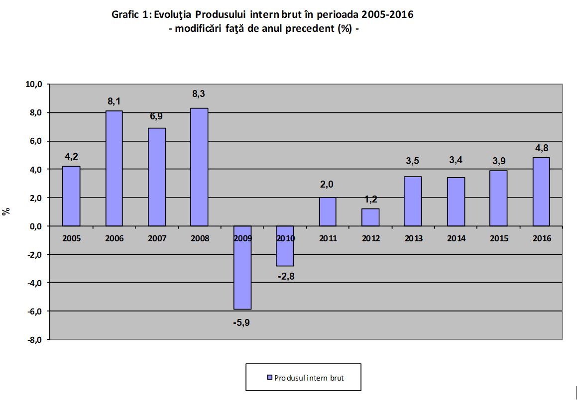 INS: Produsul intern brut în 2016 a fost, în termeni reali, mai mare cu 4,8%