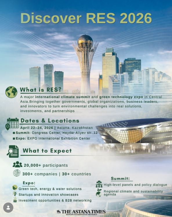 România va fi reprezentată de companiile românești Stilo Evora, Zeolites Production și Tar Industries la expoziția internațională și summitul 'RES 2026 EXPO' (Regional Ecological Summit EXPO), dedicat tehnologiilor verzi și soluțiilor sustenabile, care va avea loc în perioada 22-24 aprilie 2026, la Astana, în Kazahstan. 'Con