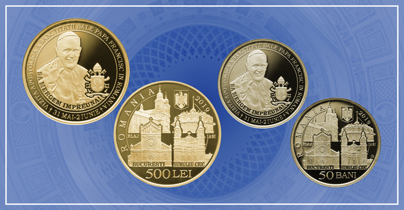 Lansarea în circuitul numismatic a monedelor din aur şi a monedelor din alamă pentru colecţionare, cu tema Vizita Apostolică a Sanctităţii Sale Papa Francisc în România, se realizează prin sucursalele regionale Bucureşti, Cluj, Iaşi şi Timiş ale Băncii Naţionale a României.