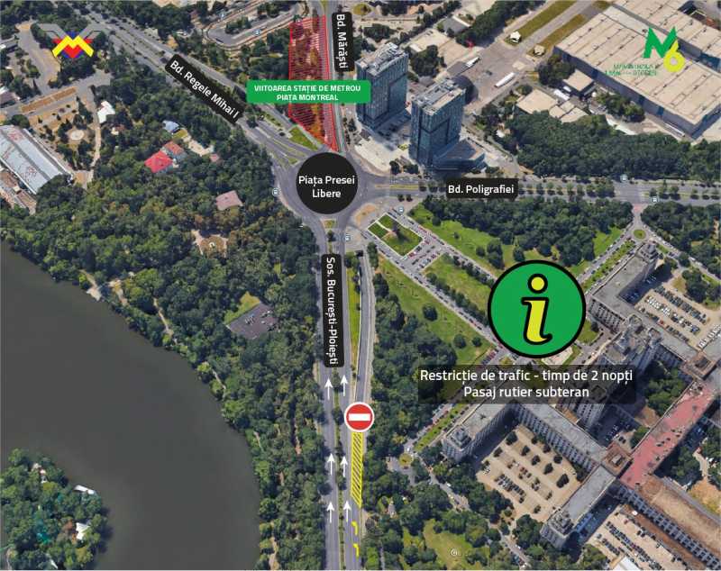 Accesul în Pasajul Piața Presei Libere va fi restricționat în nopțile de 21-22 aprilie și 22-23 aprilie 2026, în intervalul orar 23:00-5:00, informează Metrorex printr-un comunicat. Potrivit sursei citate, restricțiile sunt necesare pentru desfășurarea lucrărilor de montare a echipamentelor de măsurare topografică în zona viitoarei staț