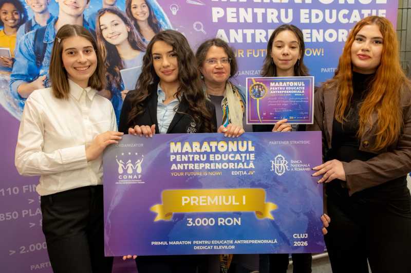 Zeci de liceeni din județul Cluj s-au întrecut în semifinala 'Maratonului pentru Educație Antreprenorială', organizată de Confederația Națională pentru Antreprenoriat Feminin (CONAF). Potrivit unui comunicat de presă al CONAF, programul este realizat în parteneriat cu Ministerul Educației și Cercetării, Universitatea de Vest din Timiș