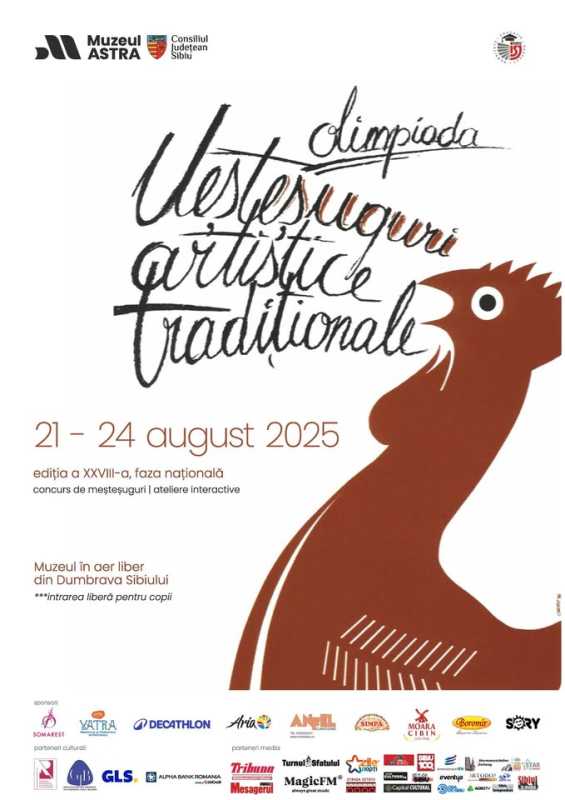 Faza națională a Olimpiadei 'Meșteșuguri artistice tradiționale', manifestare aflată la ediția cu numărul 28, se va desfășura în perioada 21-24 august la Muzeul ASTRA din Sibiu, reunind 244 de participanți din România, dar și din Republica Moldova și Bulgaria, informează, miercuri, instituția muzeală sibiană.