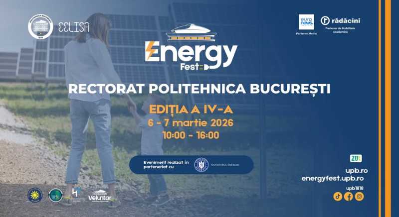 Campusul Politehnicii București reunește, vineri și sâmbătă, specialiști din industrie, profesori și studenți care vor discuta despre viitorul energiei la EnergyFEST 2026, cel mai amplu eveniment universitar dedicat energiei din România. Potrivit unui comunicat transmis AGERPRES, EnergyFEST 2026 devine, timp de două zile, o platfor