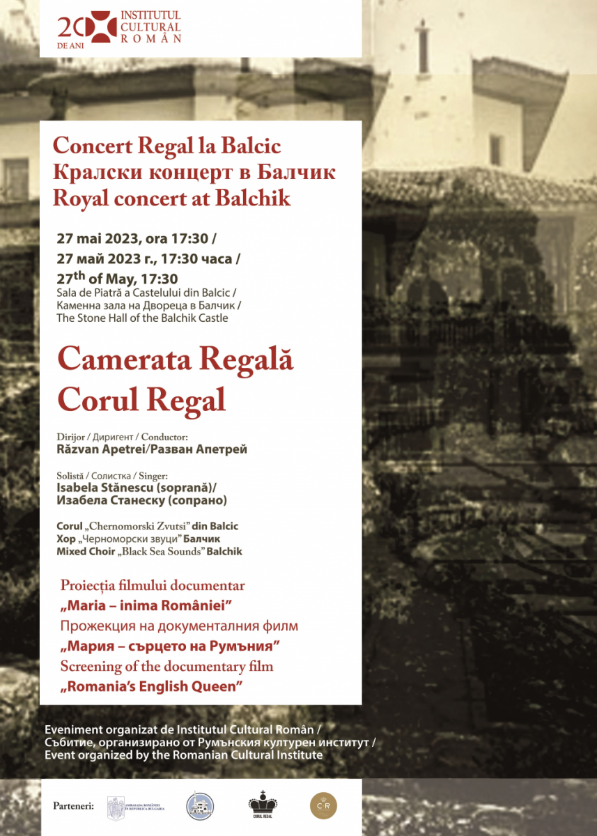 The Royal Chamber Orchestra and the Royal Choir, under the baton of conductor Razvan Apetrei, will perform in the Stone Hall of the Balchik Castle on Saturday, May 27, 2023, at 17:30, as part of the "Royal Concert in Balchik" project, organized by the Romanian Cultural Institute (ICR).