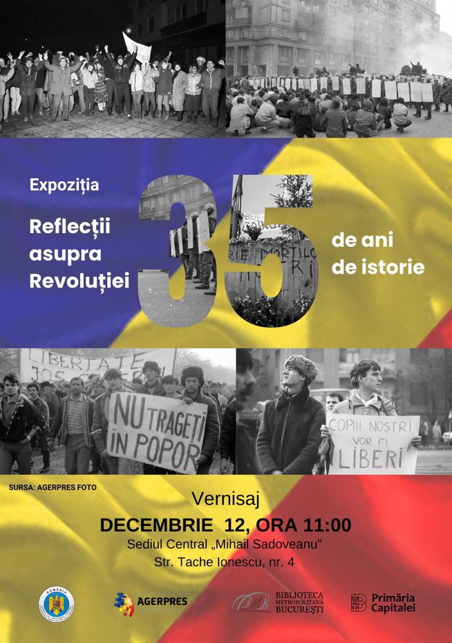 The exhibition "Reflections on the Revolution: 35 Years of History," featuring images from the archive of the AGERPRES National News Agency, will be inaugurated at the Metropolitan Library of Bucharest on Thursday.