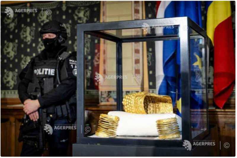 The Cotofenesti golden helmet and two of the three Dacian gold bracelets stolen last year from the Drents Museum in the Netherlands and subsequently recovered have been returned to Romania, the Dutch Prosecution Service announced on Thursday in a press release published on its website. Stan Rares-Petru and Daniela Buruiana, representatives of the Romanian Pros