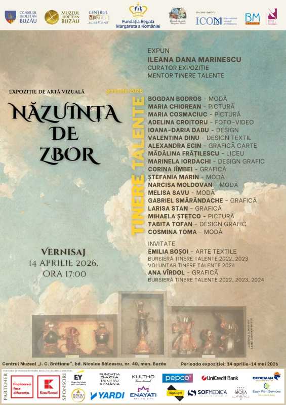 The Buzau County Museum, in partnership with the Margareta of Romania Royal Foundation, is organizing the opening of the exhibition called 'The aspiration to fly' ('Nazuinta de zbor'), dedicated to young artists of the 2026 generation, an event which coincides with the 130th anniversary of the inauguration of the former 'I. C. Bratianu' hospital build