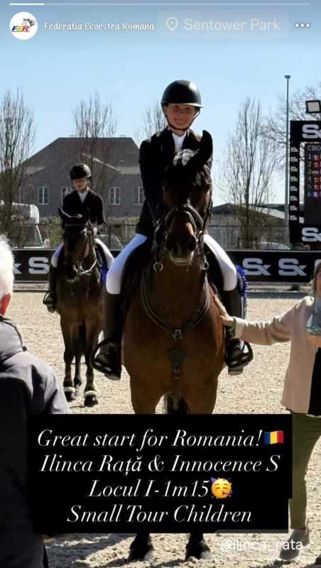 Iasi equestrian Ilinca Rata, aged 14, brought Romania its first victory in the CSIO Ch Nations Cup Youth competition, held in Opglabbeek (Belgium). Registered with the Equester Sports Club Iasi, Ilinca won in the debut event for the Children category - Small Tour (1.15 m), after a penalty-free course, performed alongside the horse Innocence S/Ingo.