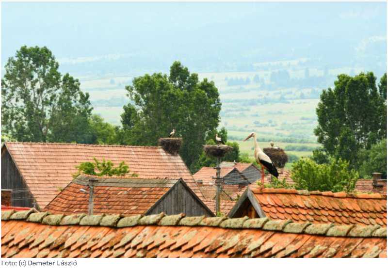 Feature/Harghita sees spectacular stork population growth, bird beloved by locals, illustrated on Sansimion coat of arms