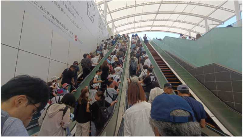 It's 10 a.m., and the air in Osaka feels almost suffocating, thick with humidity. Thankfully, the subway takes you straight to Yumeshima, the newest and final stop. The moment you step onto the escalators, the sheer scale hits you: thousands of fellow passengers are all headed to the Expo, just like you. The full impact hits at the entrance gates, where a sea of people patiently waits their turn to step into what feels like a promised land.