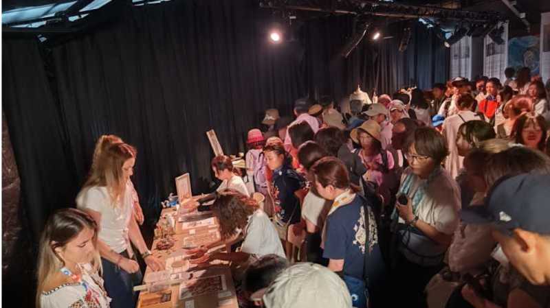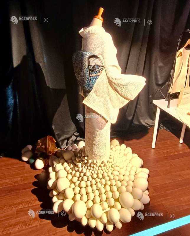 The mini-concerts always end with applause, forming the centerpiece of Romania's pavilion at Osaka. Afterwards, some visitors participate in a clay modeling session led by ceramic artist Ioana Deak, remaining as disciplined, attentive, and focused as they naturally are. The rest explore the art exhibition, whose central theme is the 'egg.' The main and most admired exhibit is a life-size kimono made from eggshells, aptly named 'Renaissance.'