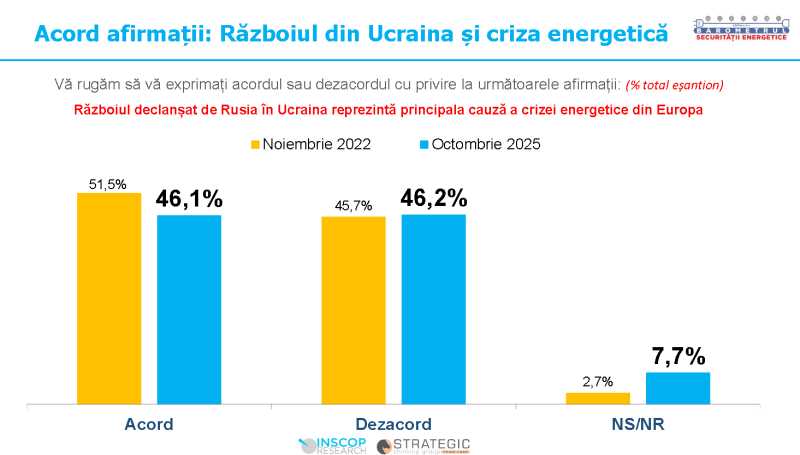 He underscored that the perception of the causes of the energy crisis has diversified, and although the war in Ukraine remains the main explanation, 'it is no longer dominant, a sign that the Romanian public opinion is internalizing other structural causes such as European policies or dysfunctions of the internal market.'