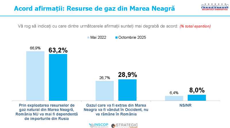 'Black Sea gas is perceived as a symbol of energy independence, but a part of the population, even if a minority, is skeptical about the destination of the gas resources. The Neptun Deep project generates optimism, Romanians believe in its economic and security effects, but the positive perception is rather strategic (jobs, income, investments), not immediately personal (lower bills). Acceptance of European energy solidarity is increasing, - a sign of geopolitical maturation: Romanians are increasingly willing to support joint crisis mechanisms, provided that there is reciprocity and management perceived as fair. Also, attitudes towards supporting the Republic of Moldova and Ukraine in the energy field reflect a combination of economic rationality and strategic empathy, consolidating Romania's image as a responsible regional actor, but with a society that demands that aid should not affect domestic interests,' Stefureac said.