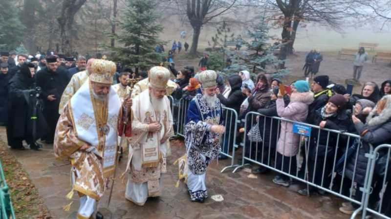 Despite the cold, foggy weather and late-autumn drizzle, the faithful filled the monastery courtyard and nearby hills to witness the local proclamation of Saint Arsenie's canonization, conducted by 30 bishops at the summer altar.