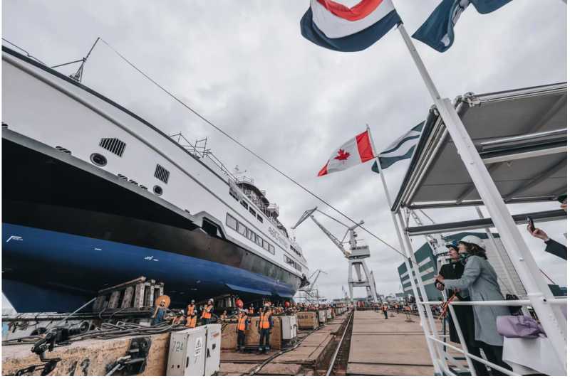Damen Shipyard in Galati floats out tenth Island-class ferry built for Canada's BC Ferries