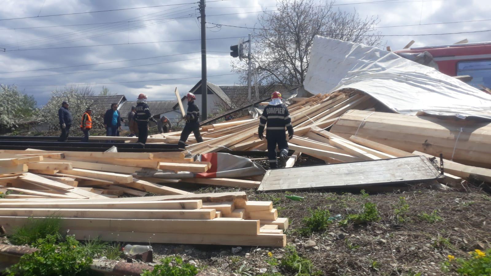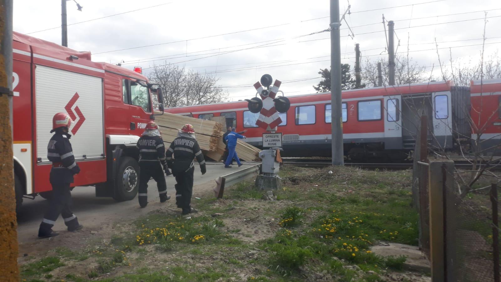 Un tir ce transporta material lemnos a fost lovit, joi după-amiază, de un tren la trecerea la nivel cu calea ferată, incidentul având loc în oraşul Beclean din judeţul Bistriţa-Năsăud.