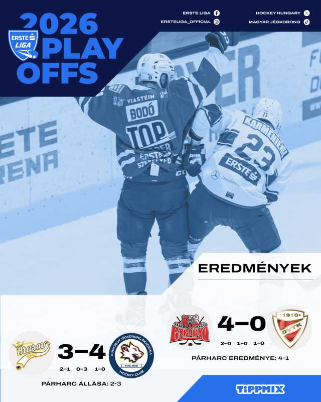 ACSH Gheorgheni, deținătoarea trofeului, s-a calificat în finala competiției regionale de hochei pe gheață Erste Liga, după ce a învins-o pe DVTK Jegesmedvek cu scorul de 4-0 (2-0, 1-0, 1-0), miercuri seara, în Remetea Ice Arena. Harghitenii s-au impus prin golurile marcate de Samuel Owen Williams, Peter Vincze și Christopher