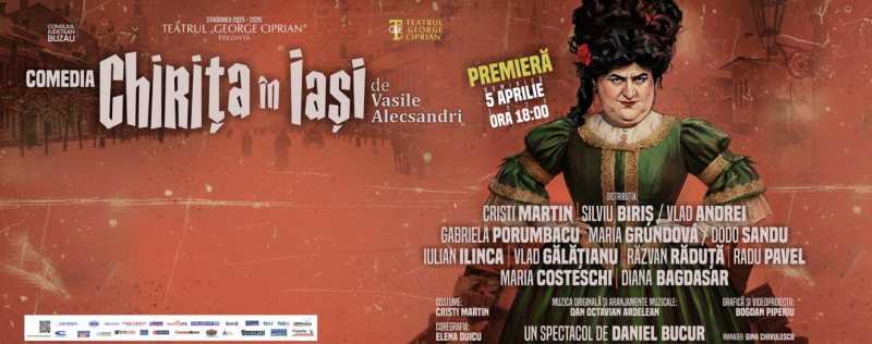 Teatrul 'George Ciprian' din Buzău marchează 30 de ani de la primul gong, eveniment care va fi celebrat prin premiera spectacolului 'Chirița în Iași' de Vasile Alecsandri, o comedie cu intrigi matrimoniale, farse și ironii între personaje, care demască superficialitatea și dorința de parvenire a eroinei. În data de 5 aprilie,