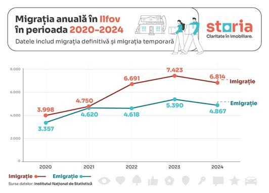 La o scară semnificativ mai mică, astfel de tendințe sunt vizibile și în cazul județului Ilfov, a cărui relevanță economică a crescut semnificativ în ultimii ani datorită conexiunilor tot mai strânse cu Capitala. De exemplu, în perioada analizată, 2.500 de locuitori ai județului s-au mutat definitiv în străinătate, concomitent cu aproape 3.800 de români care au revenit din străinătate și s-au mutat într-una dintre localitățile ilfovene, astfel că județul a câștigat aproximativ 1.300 de locuitori pe segmentul de migrație definitivă.