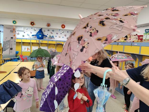 Prin joc şi culoare ne-am pus creativitatea şi emoţiile pozitive ȋn mişcare, pentru a aduce la suprafaţă inspiraţia ce naşte inovare. Picăturile de apă ... confecționate din hârtie au fost înșirate una cȃte una şi s-au transformat ȋn ploaie. Nu una reală, ca cea de afară, ci ȋn una susținută de umbrelele celor mici.