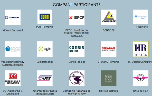 - TPF Inginerie, ISPCF – Institutul de Studii și Proiectări Căi Ferate S.A., EGIS România, DB Engineering & Consulting, Consis Proiect – companii cu activități de consultanță, proiectare, supervizare și inginerie