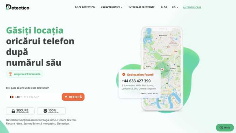 Detectico este o aplicație de localizare bazată pe același principiu al link-ului de confirmare, dar se remarcă prin precizia ridicată a localizării și printr-o interfață vizuală mai modernă. Platforma funcționează direct din browser și nu necesită descărcarea niciunei aplicații.